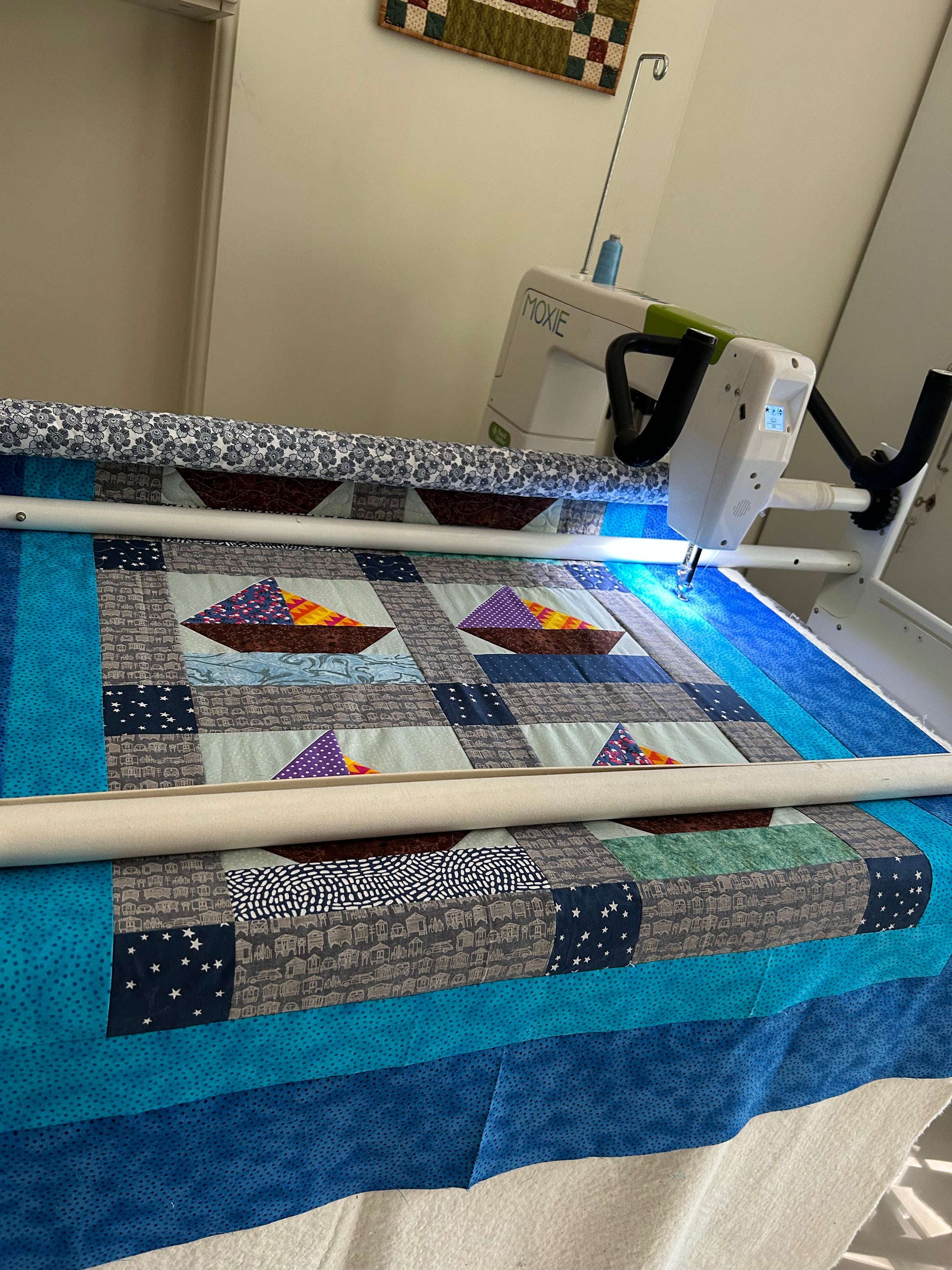 handmade sailboat baby quilt, lovingly pieced and quilted in a bright, joyful nautical theme. Perfect for gifting, cuddling, nursery décor, or as a lifelong keepsake.